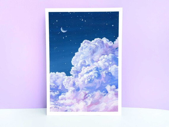 Purple Cloud And Night Sky Art Print A4 A5 A6 Fluffy Cloud Etsy Finland